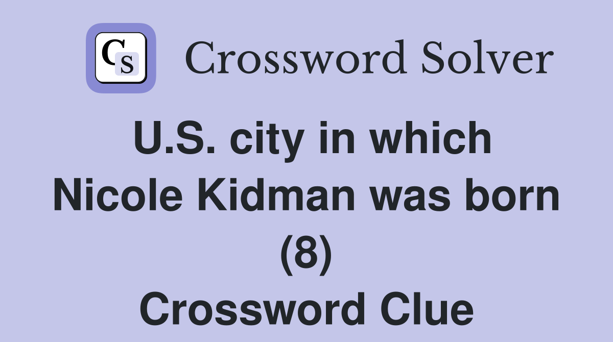 U S city in which Nicole Kidman was born (8) Crossword Clue Answers