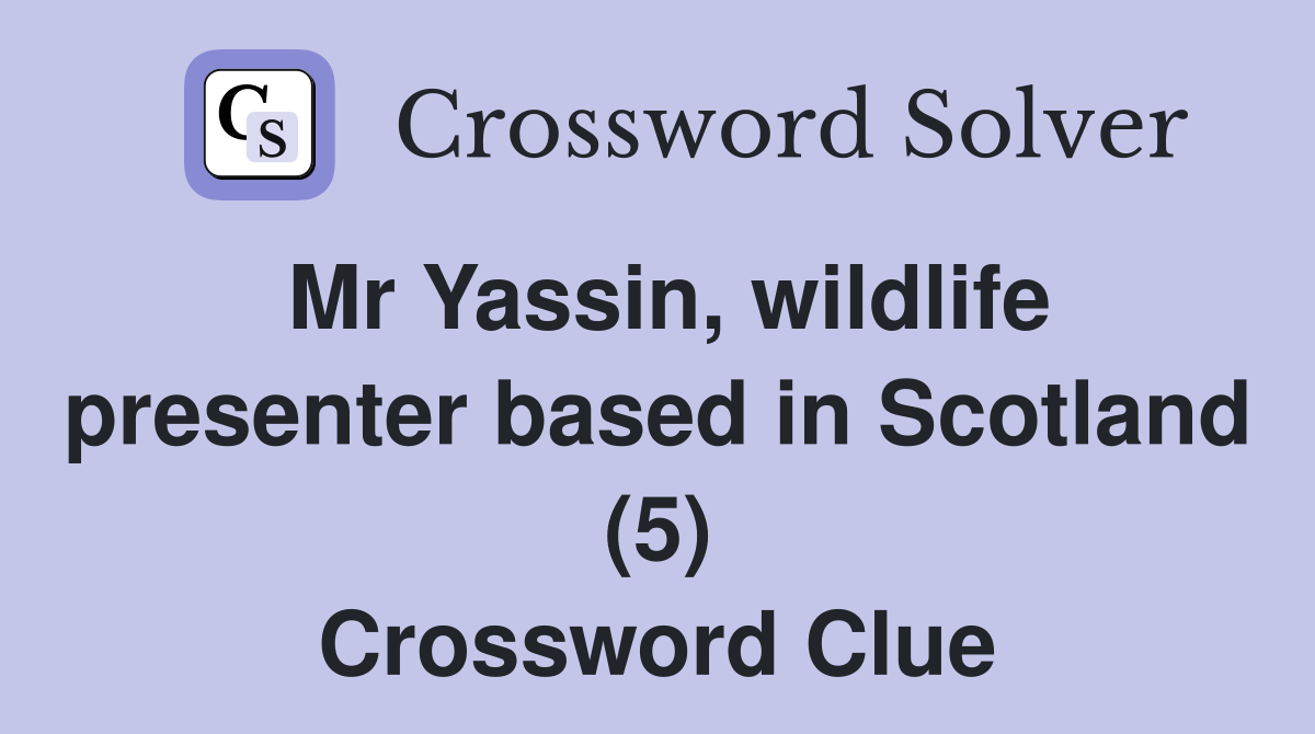 Mr Yassin wildlife presenter based in Scotland (5) Crossword Clue