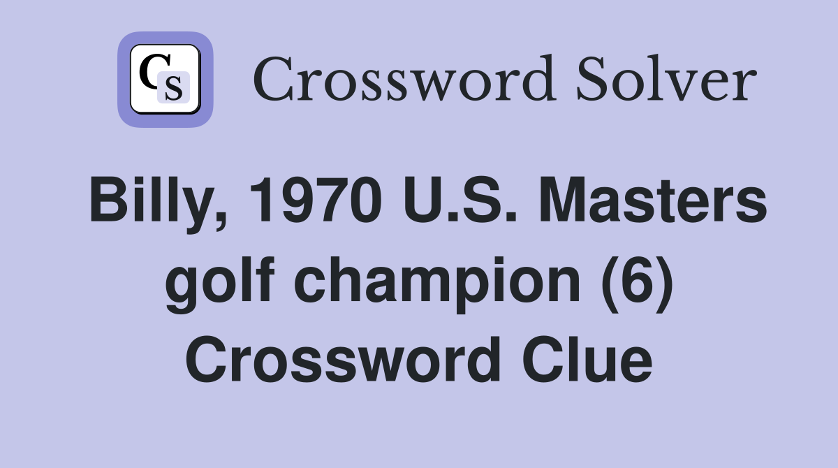Billy 1970 U S Masters golf champion (6) Crossword Clue Answers
