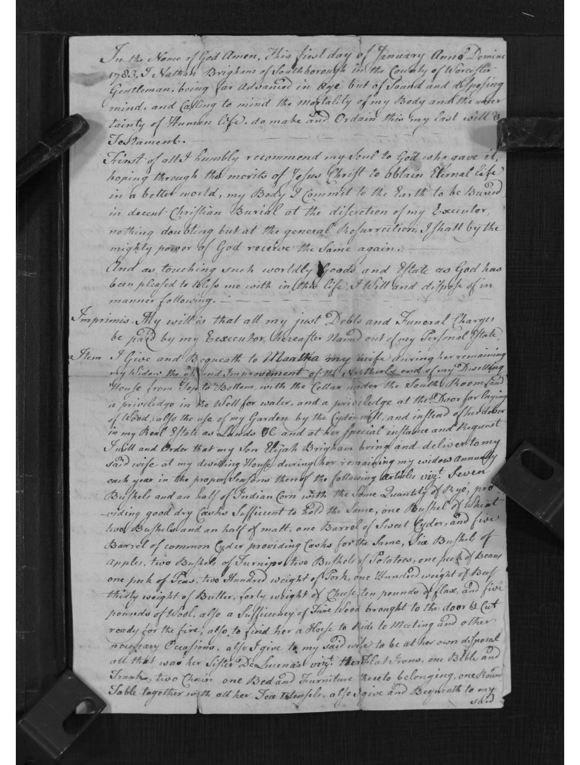 Genea Musings: Amanuensis Monday 1783 Will of Nathan Brigham (1693