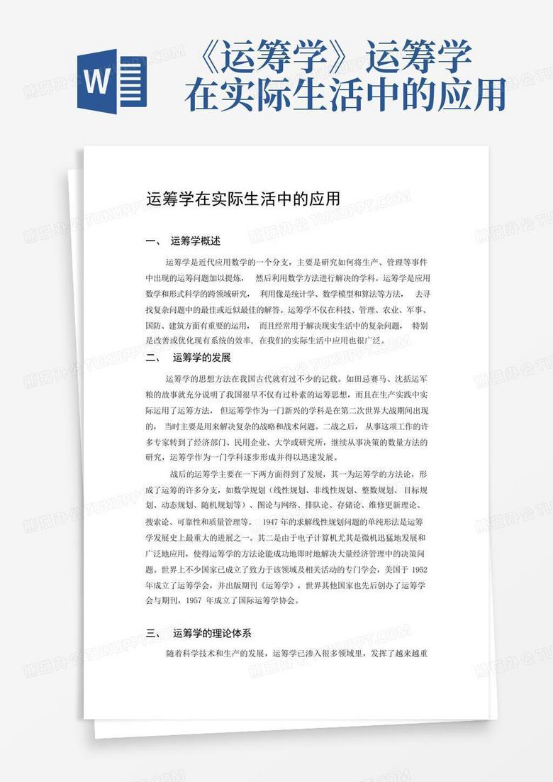 《运筹学》运筹学在实际生活中的应用Word模板下载 编号lowxnmna 熊猫办公