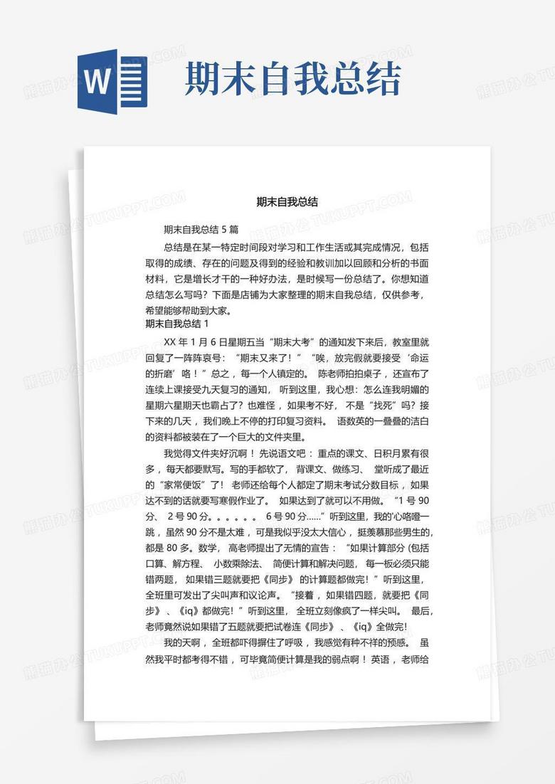 期末自我总结Word模板下载 编号lgrednox 熊猫办公