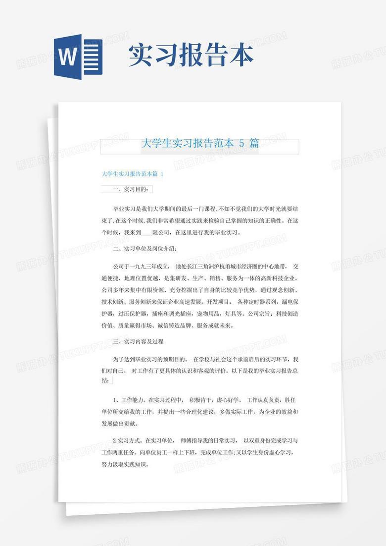 大学生实习报告范本5篇Word模板下载 编号qxpaykyp 熊猫办公