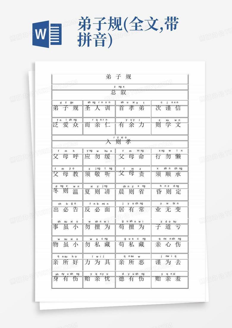 弟子规(全文 带拼音)Word模板下载 编号lkjnvppr 熊猫办公