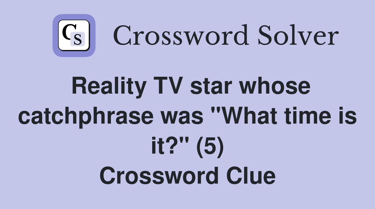 Reality TV star whose catchphrase was quot What time is it? quot (5