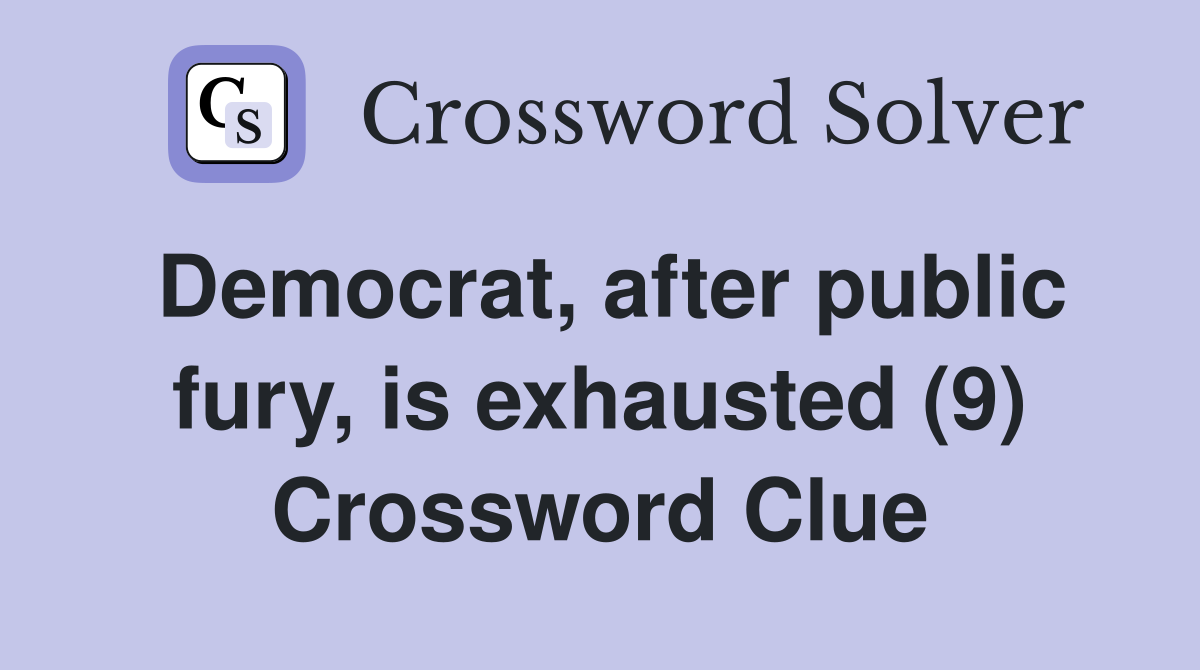 Democrat after public fury is exhausted (9) Crossword Clue Answers