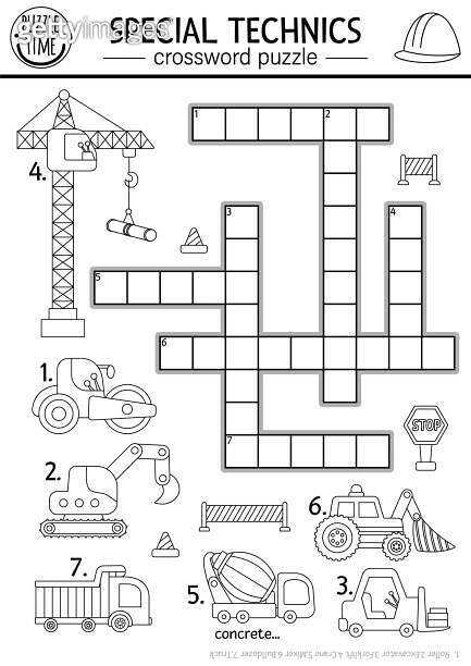 Vector Black And White Construction Site Crossword Puzzle For Kids