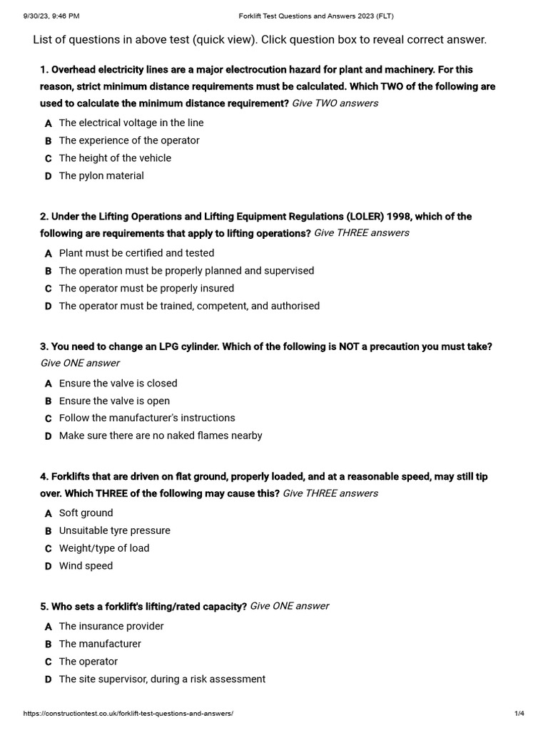 Forklift Test Questions and Answers 2023 (FLT) PDF Forklift