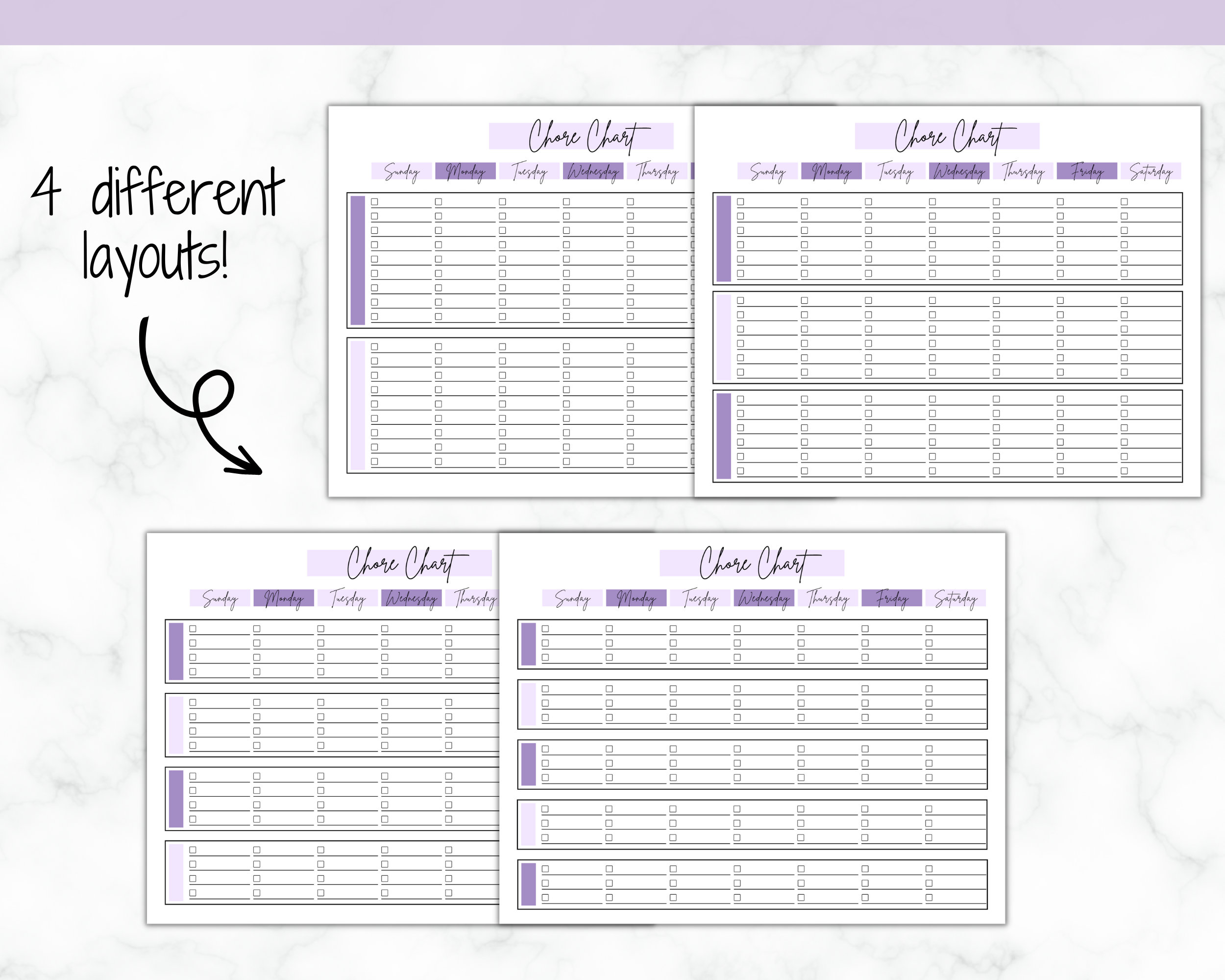 Printable Family Chore Chart Template Household Cleaning PDF US Letter