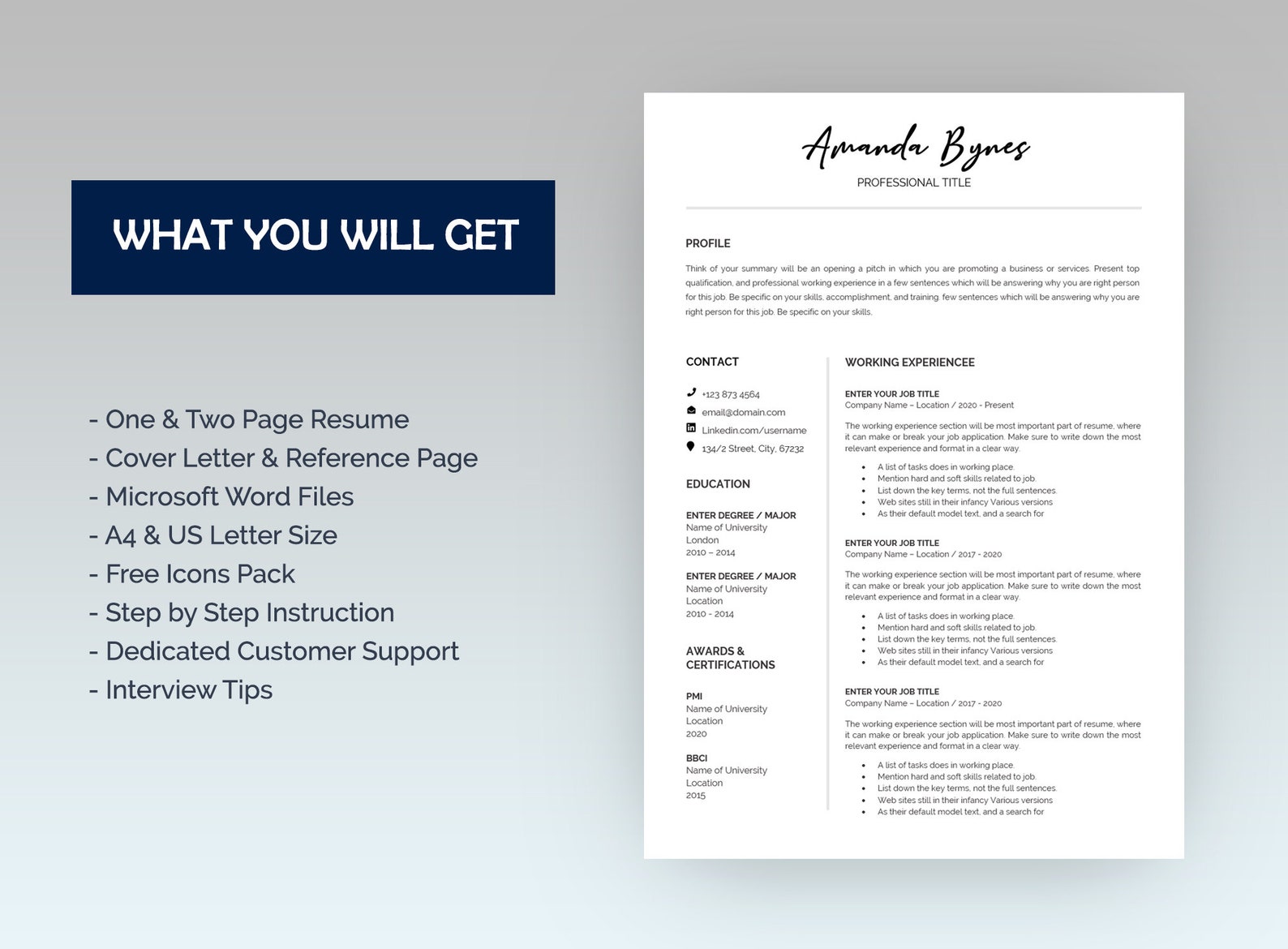 Sleek Resume Template for Word Executive Resume Template CV Template