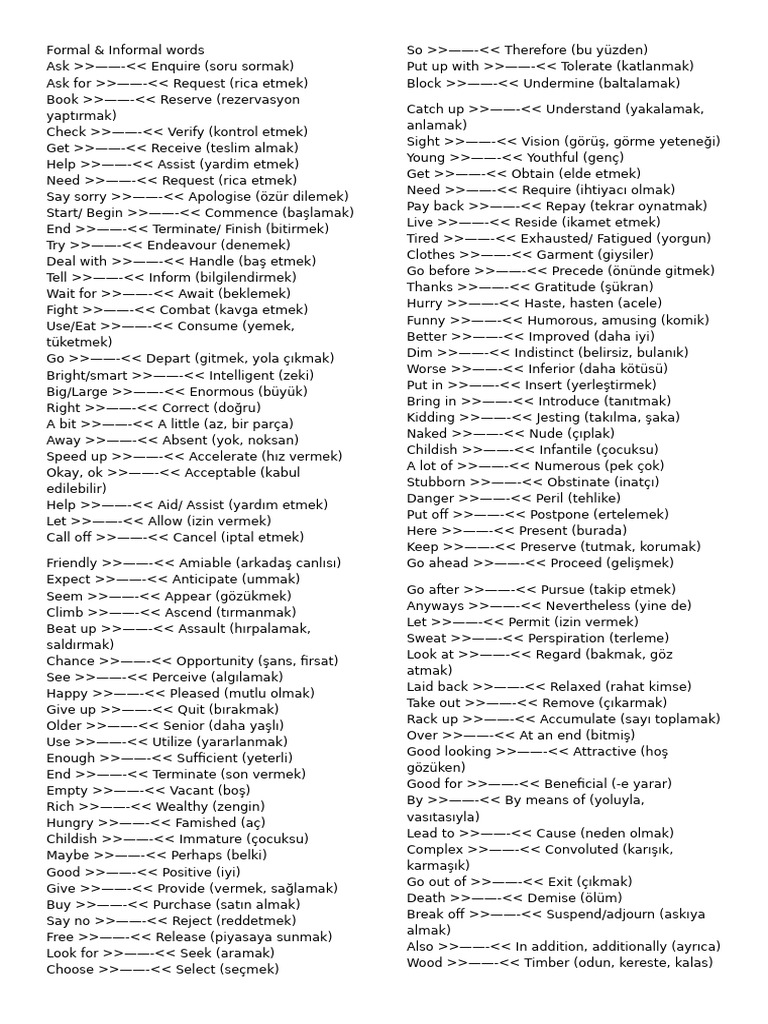 Formal vs Informal Vocabulary Guide PDF