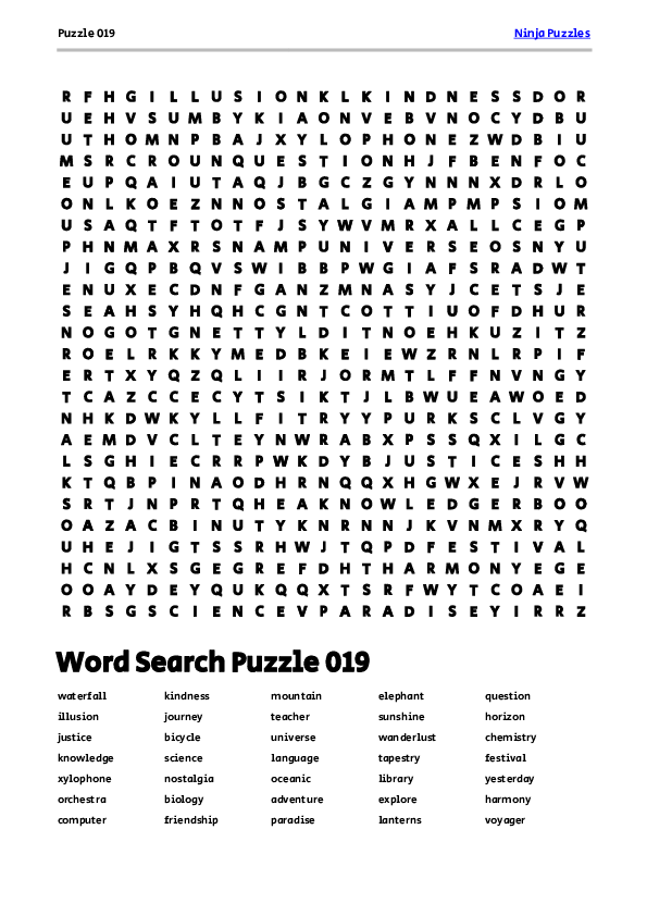 Free Printable Puzzle 019 themed Word Search Puzzle Free Printable PDF