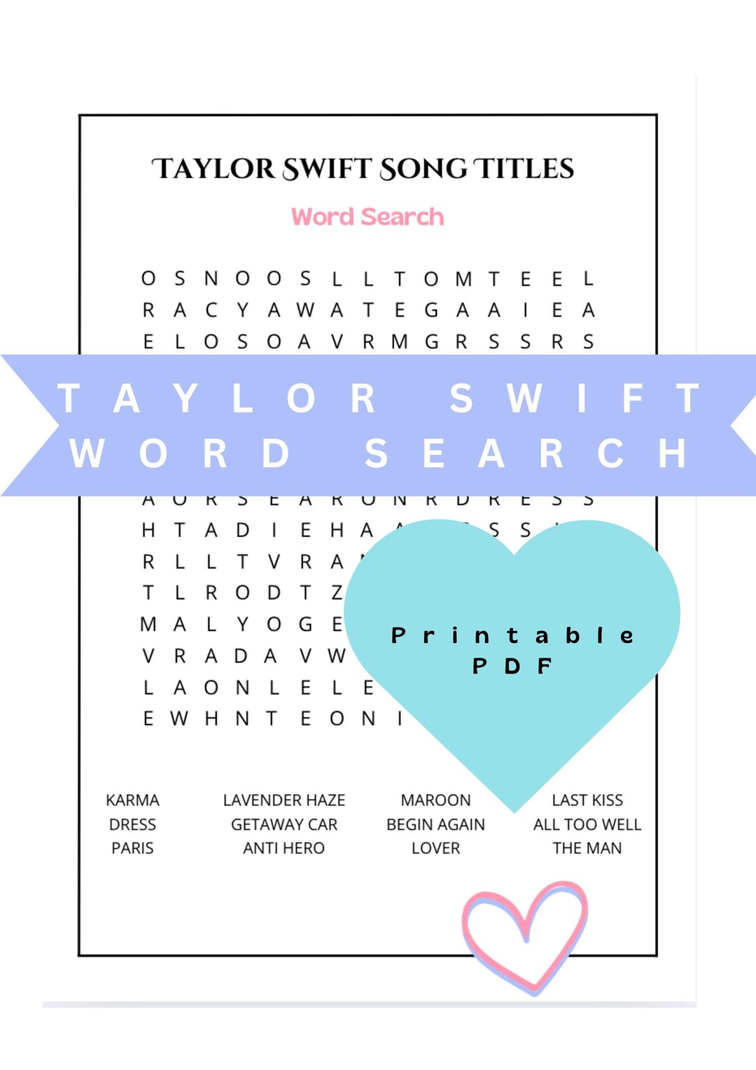 Taylor Swift Party Games: Word Search Crossword and More PDF Etsy