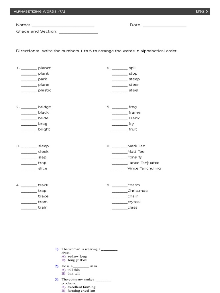 Alphabetizing Words Education com