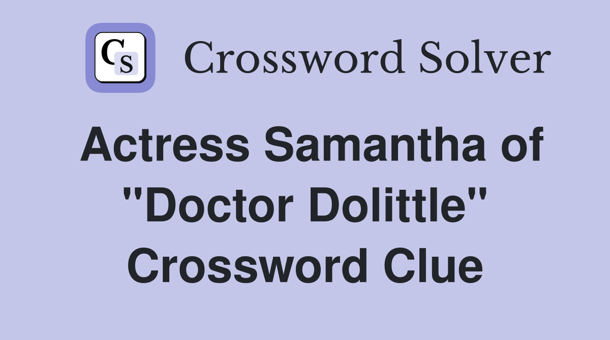 Actress Samantha of quot Doctor Dolittle quot Crossword Clue Answers