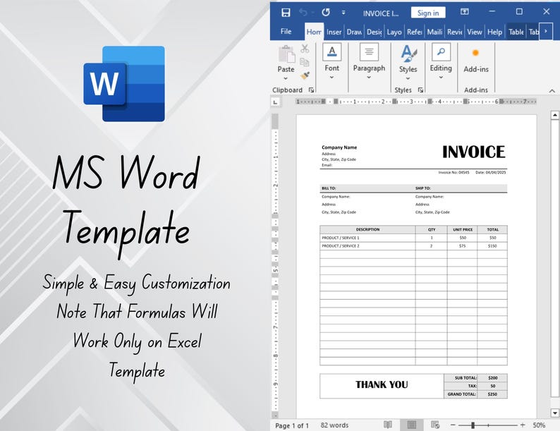 Word Invoice Template With Formulas
