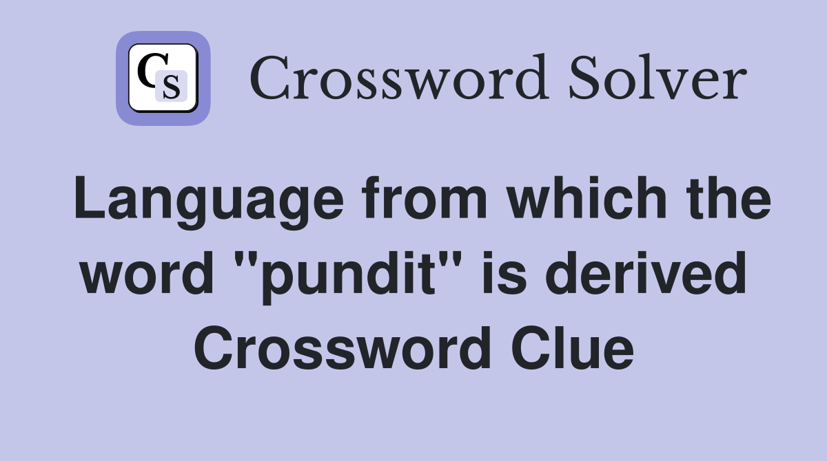 Language from which the word quot pundit quot is derived Crossword Clue