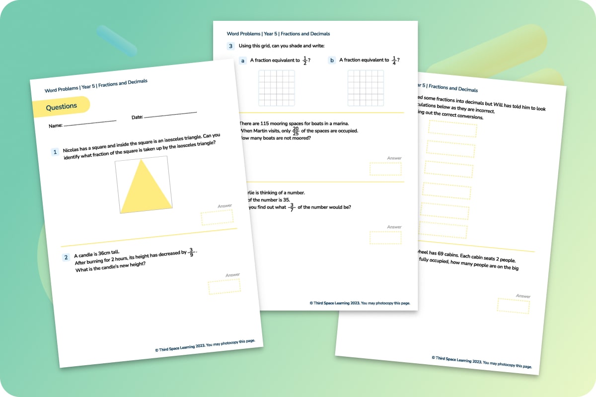 Free 5th grade math fraction word problems worksheet Download Free 5th