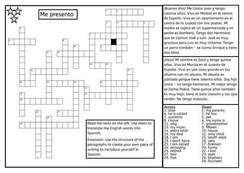 Crossword Puzzle Spanish Greetings And Introductions Introduction To