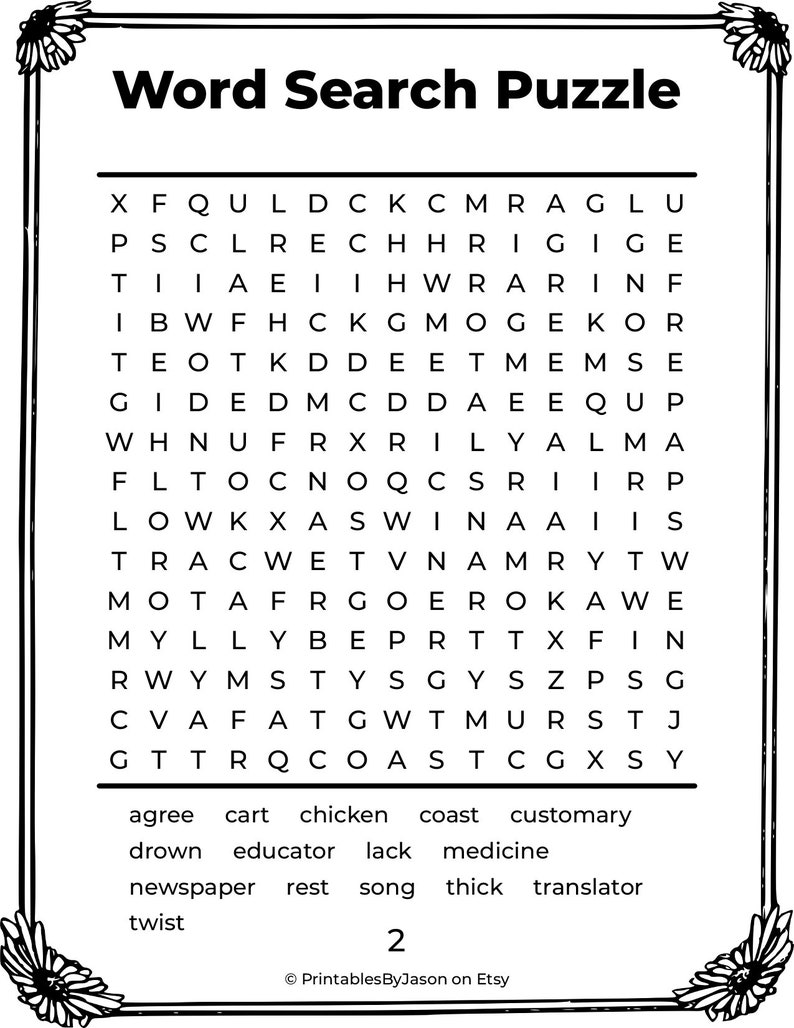 100 Word Search Puzzles Printable PDF/PNG Digital Download Etsy