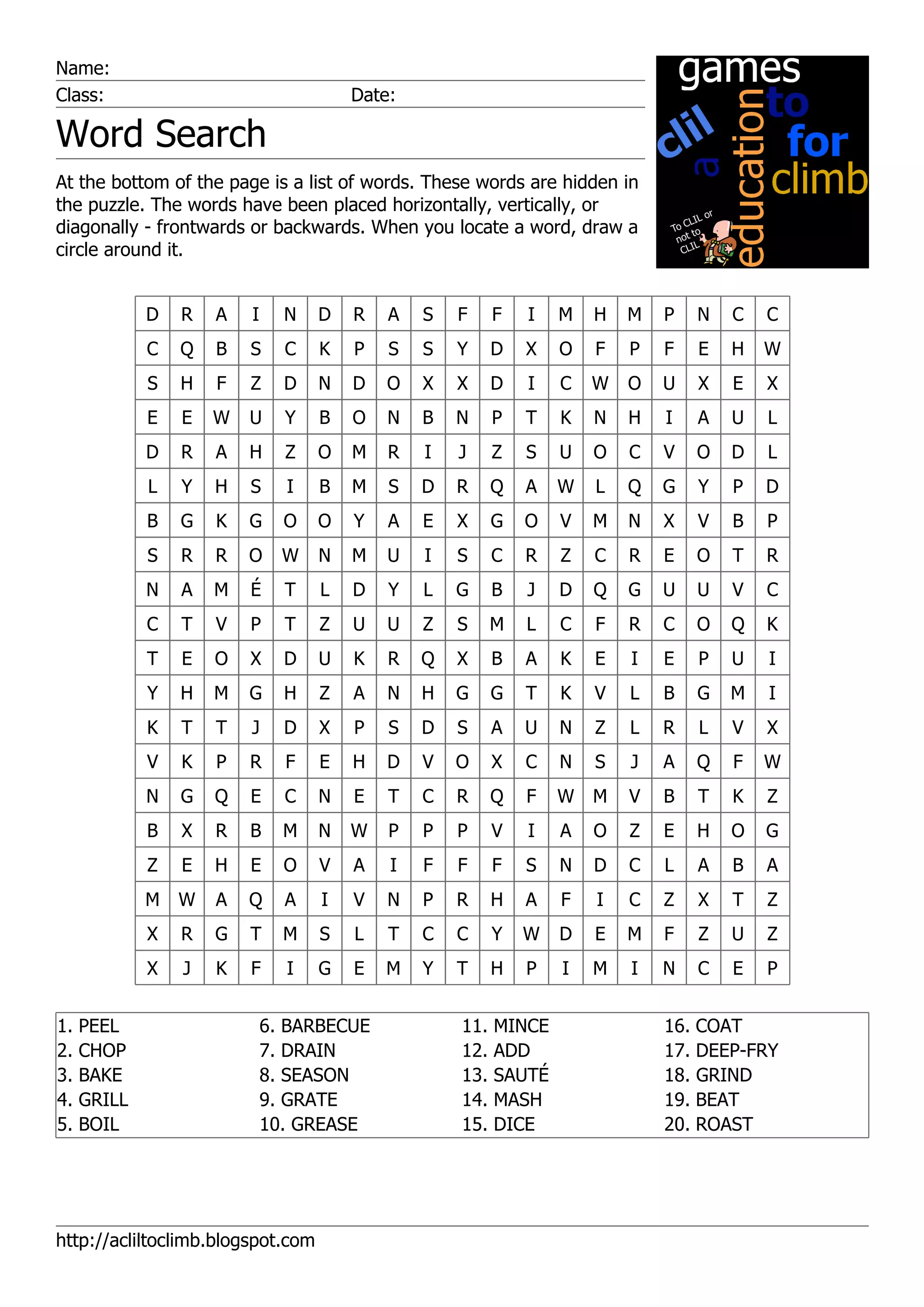 Cooking Verbs Word Search PDF Barbecues and Grilling Food Drink