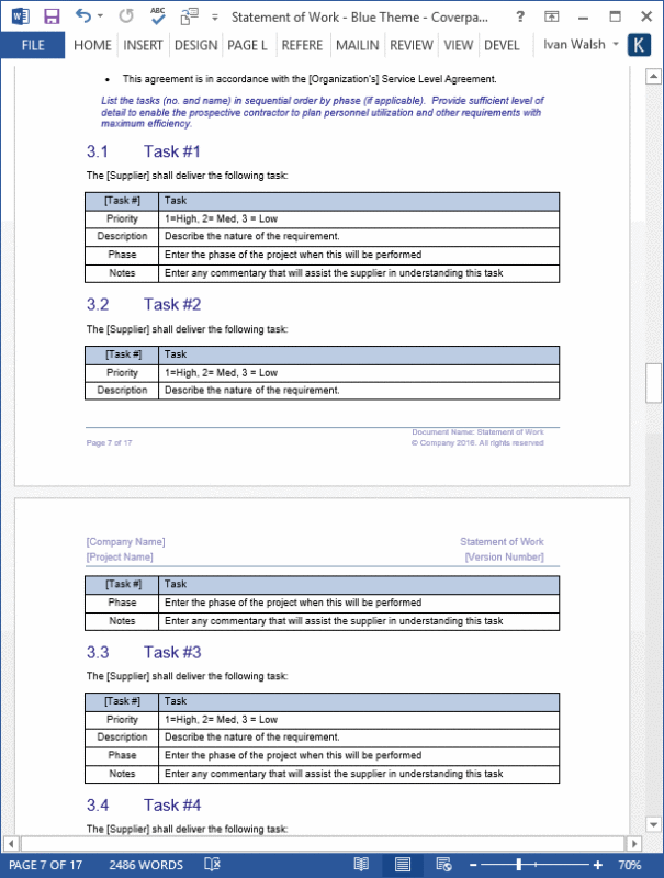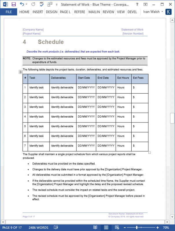Statement Of Work Word Template