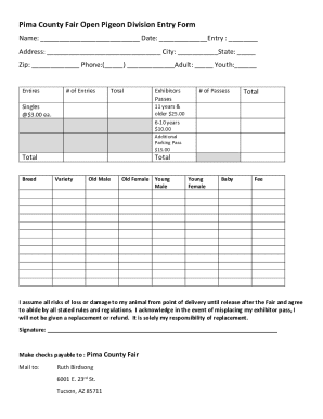 Fillable Online Open Pigeon Division Entry Form Fax Email Print pdfFiller