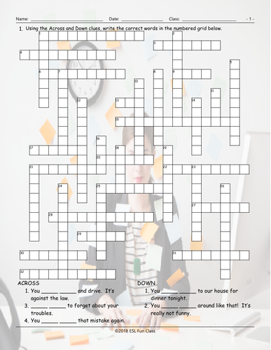 Modal Verbs Obligation Necessity Prohibition Crossword Puzzle TPT