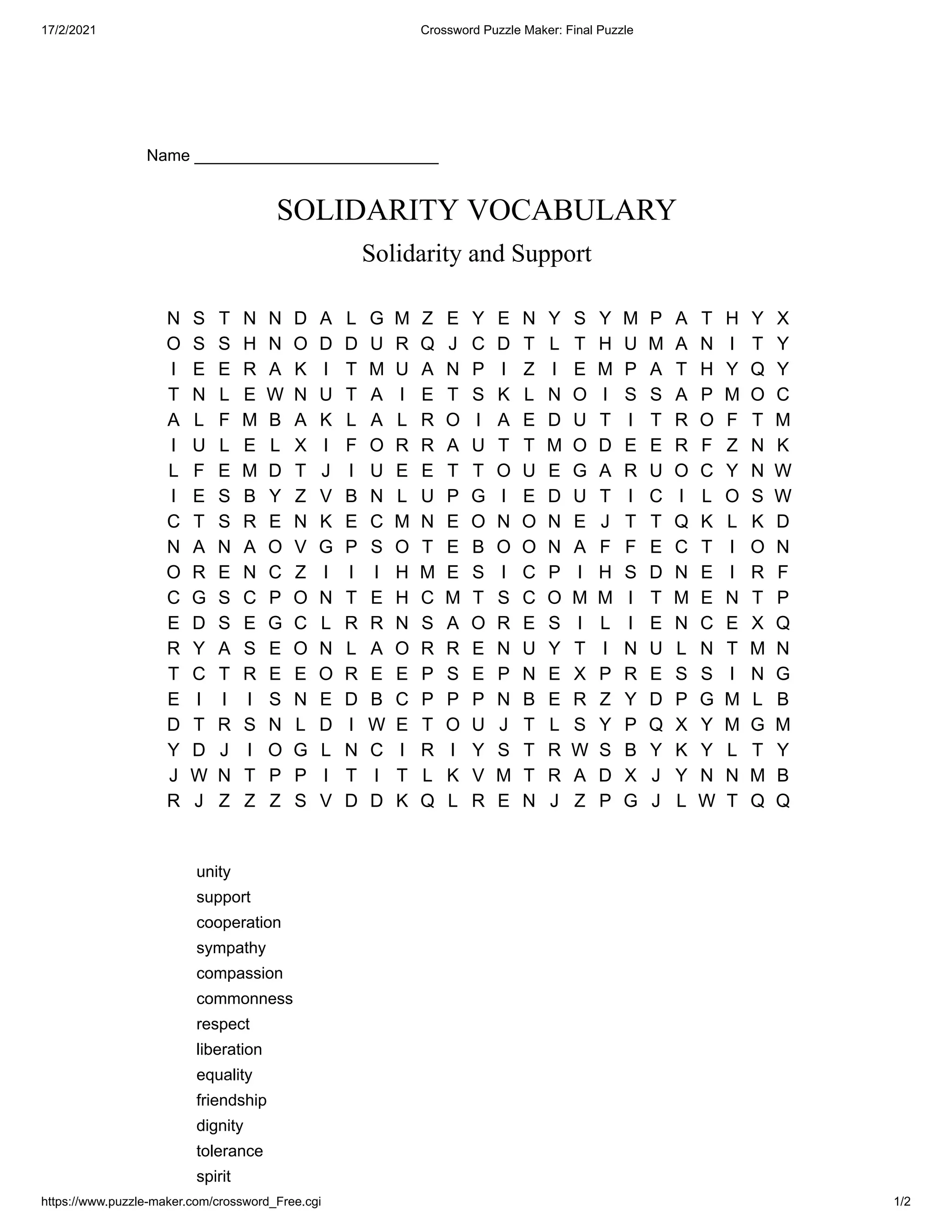 SOLIDARITY VOCABULARY WORD SEARCH PDF