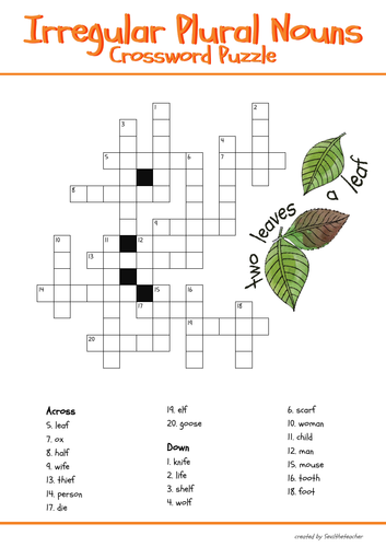 Irregular Plural Nouns Crossword Puzzle Teaching Resources