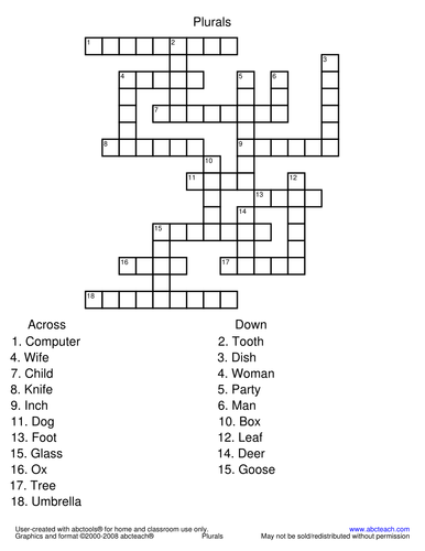 plural crossword puzzle Wordsearch