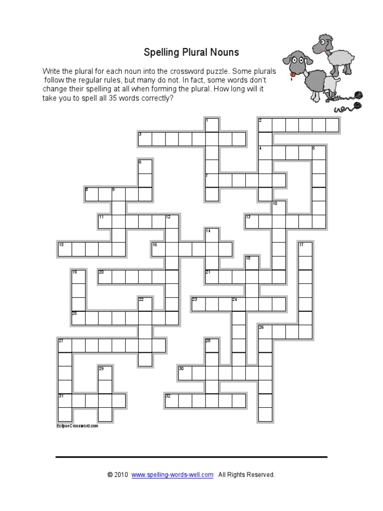Spelling Puzzles Pluralcrossword PDF Plural Morphology