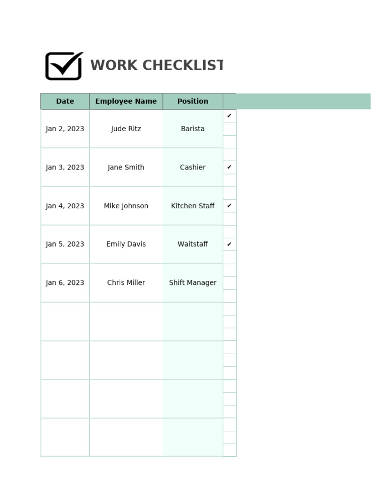 Work Checklist Template