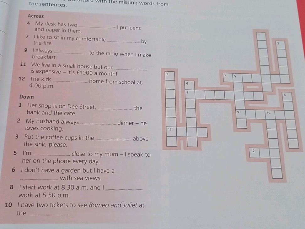 Fill in the crossword with the missing words StudyX