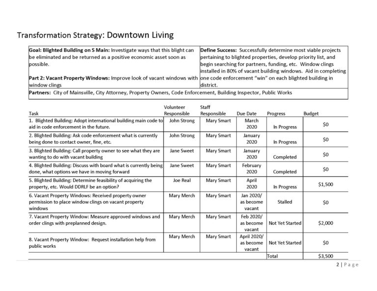 Example Work Plan and Blank Work Plan Template Georgia Mainstreet