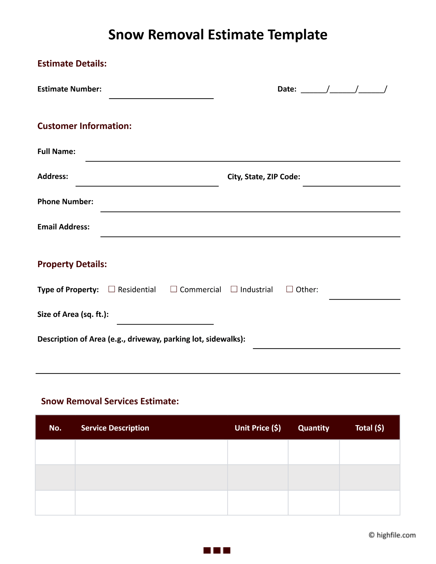 Job Estimate Template Printable Job Estimate Template PDF Editable