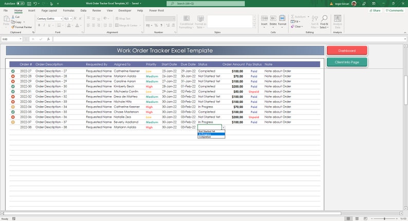 Work Order Tracker Excel Template/work Order Tracking Excel Template