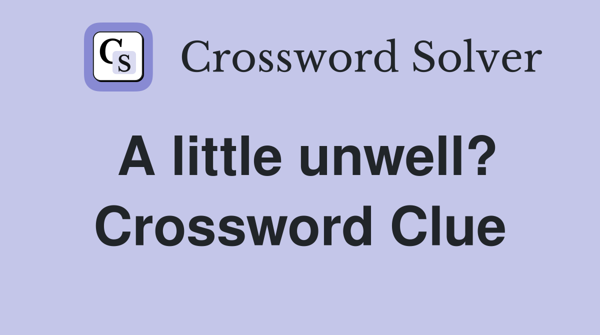 A little unwell? Crossword Clue Answers Crossword Solver