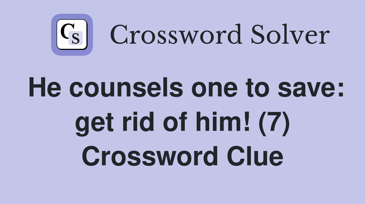 He counsels one to save: get rid of him (7) Crossword Clue Answers
