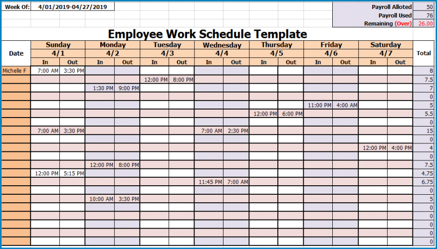 Free Weekly Employee Work Schedule Template Free Printable Templates