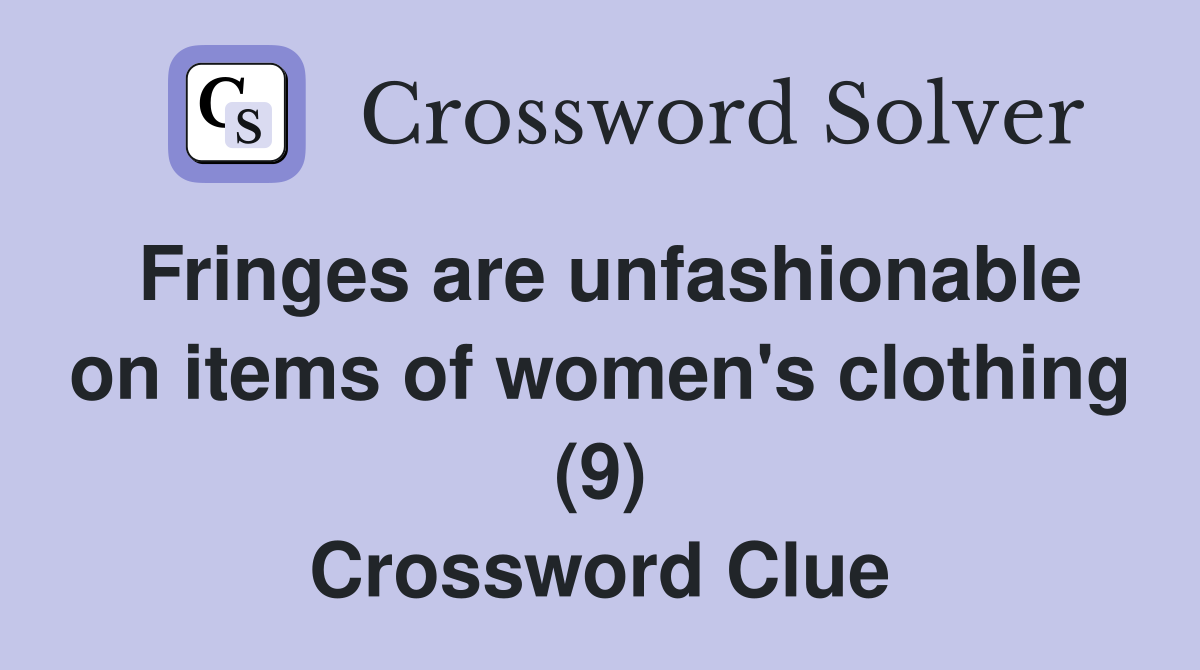 Fringes are unfashionable on items of women #39 s clothing (9) Crossword