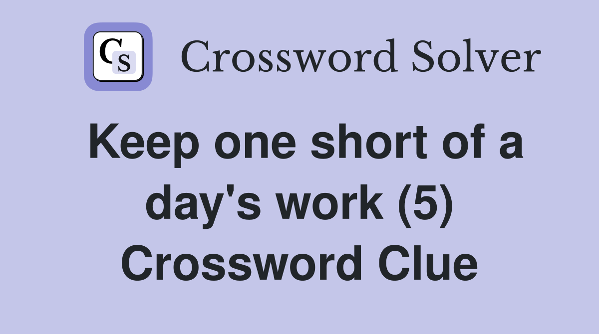 Keep one short of a day s work (5) Crossword Clue Answers Crossword