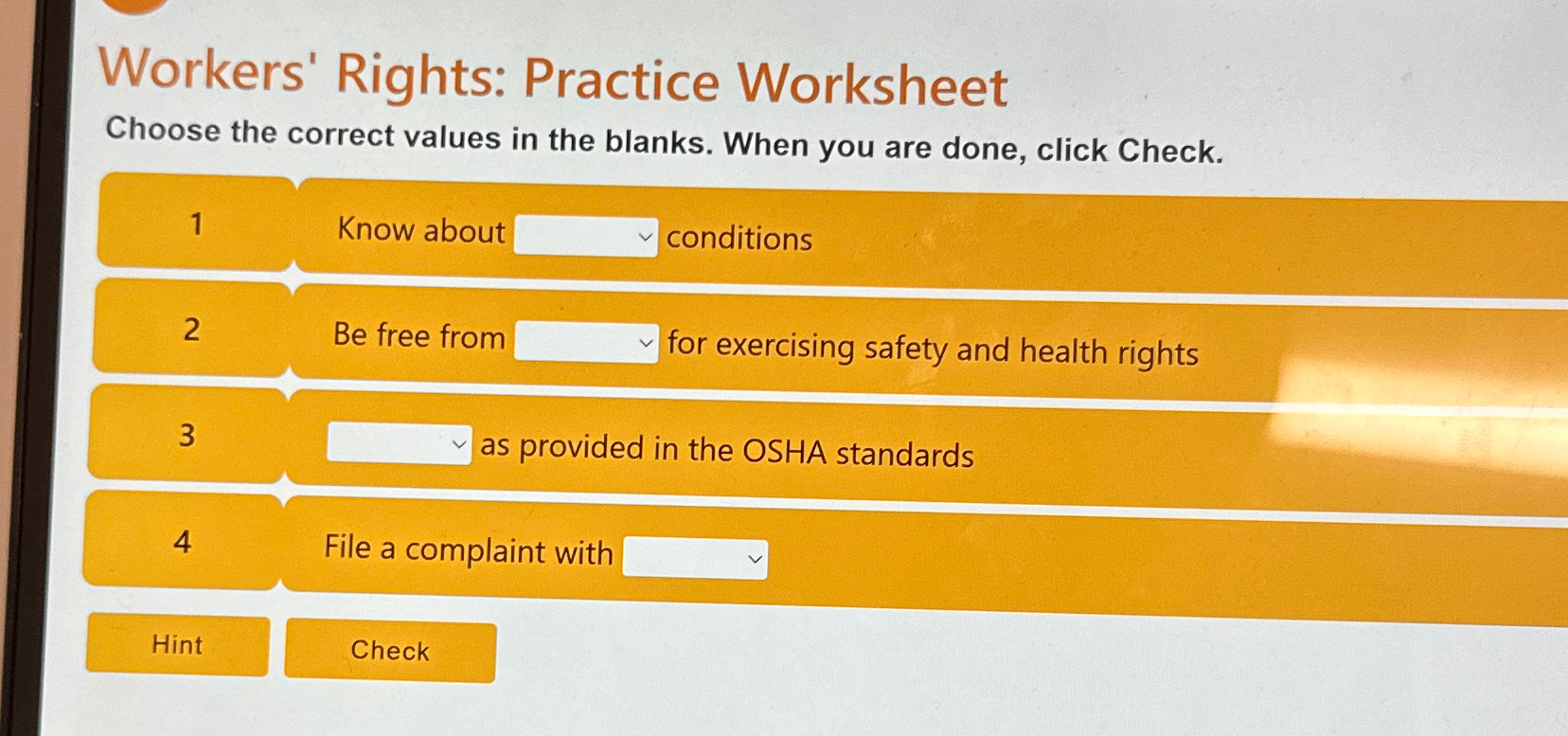 Workers Rights Practice Worksheet Osha Workers Rights Practi