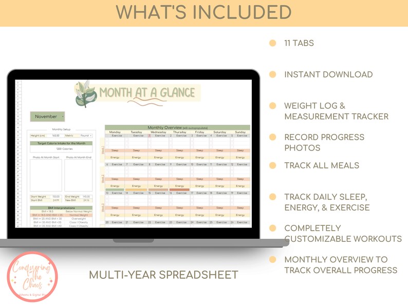 Boho Floral Weight Loss Tracker Fitness Journal Workout Organizer
