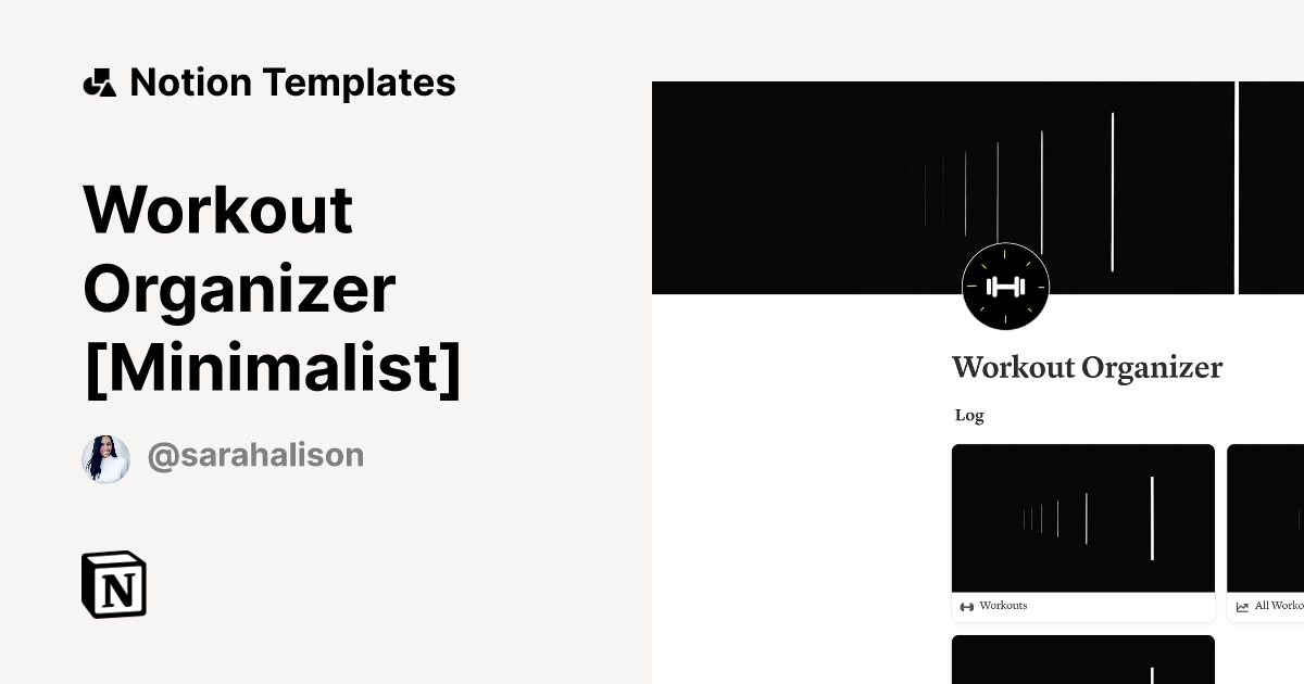 Workout Organizer Minimalist Template by Sarah Notion Marketplace