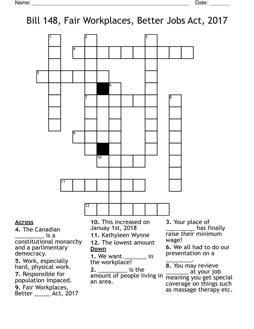 Bill 148 Fair Workplaces Better Jobs Act 2017 Crossword WordMint