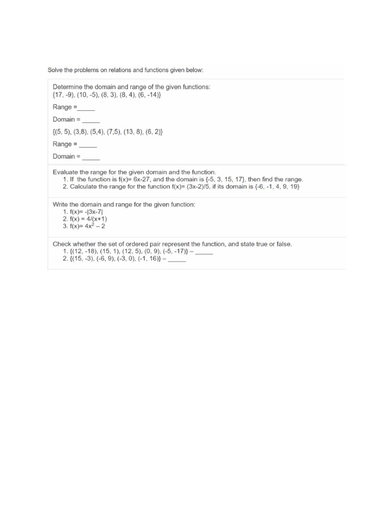 SOLUTION: Relations and Functions Worksheet Studypool Worksheets