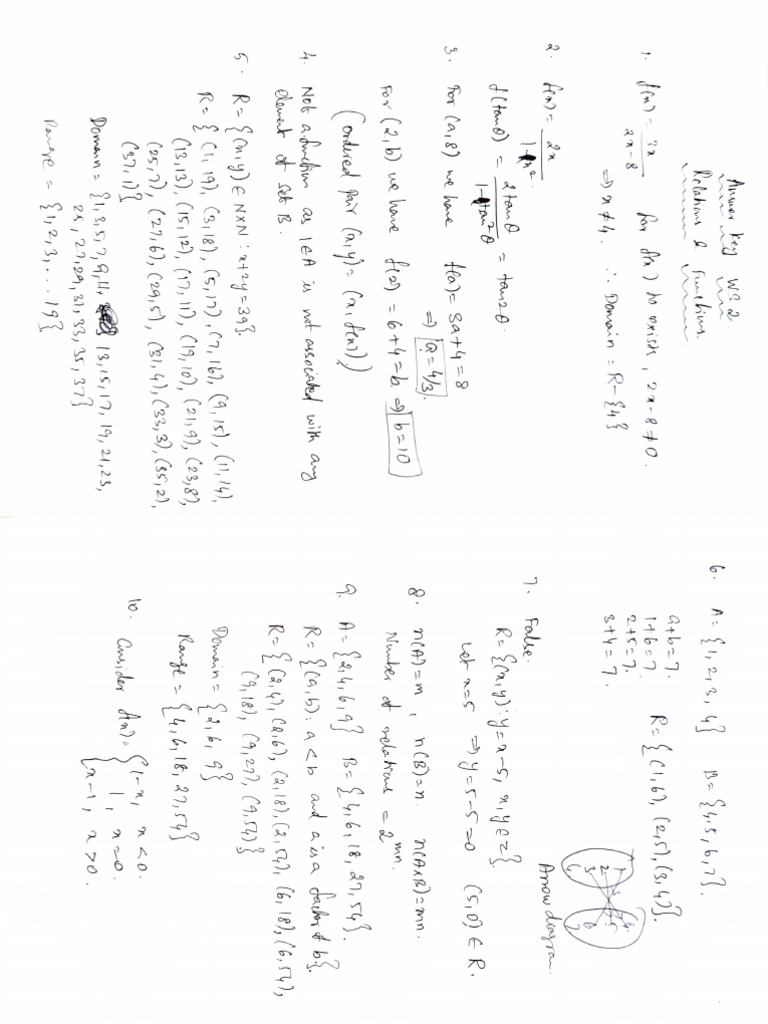 Worksheet 1 Relation and Functions PDF