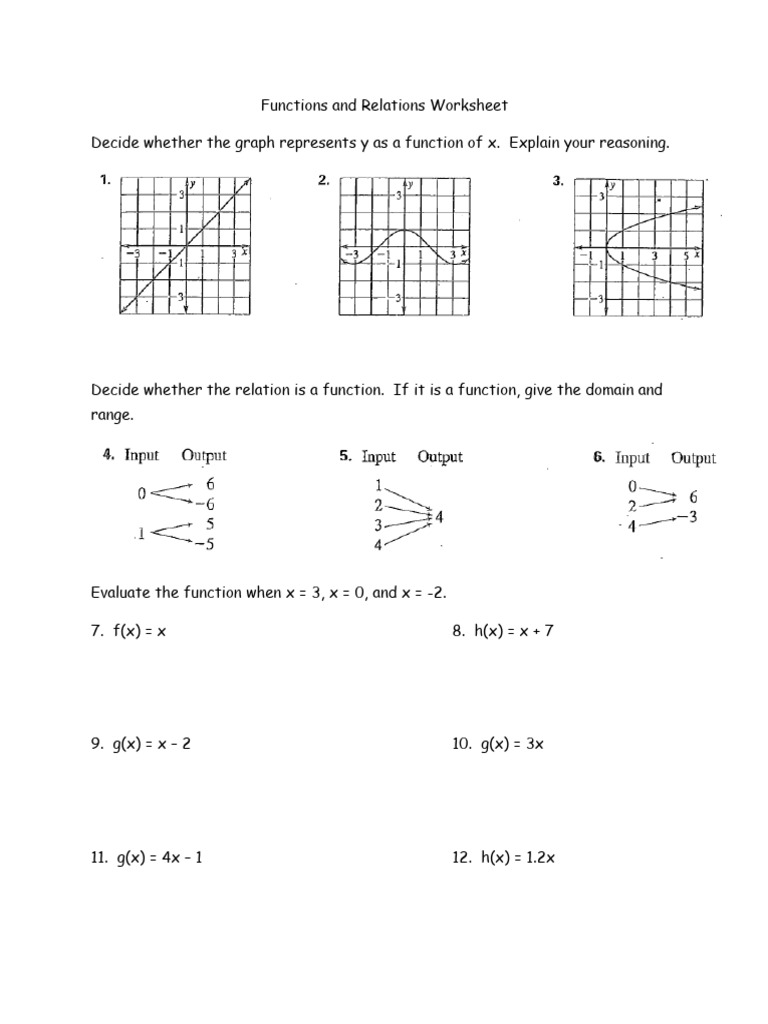 Practice Worksheet: Relations Functions PDF Worksheets Library