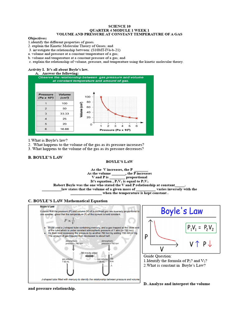 Boyles Law Worksheet Pdf Boyles Law Ppt Lesson PPT